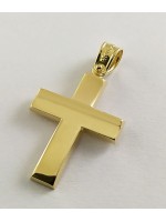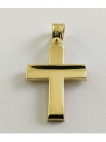 Ανδρικός Σταυρός δημιουργίας "Μενέκου", σε κίτρινο χρυσό 14 καρατίων, minimal γραμμής. Γυαλιστερή σατινέ ματ υφή.