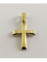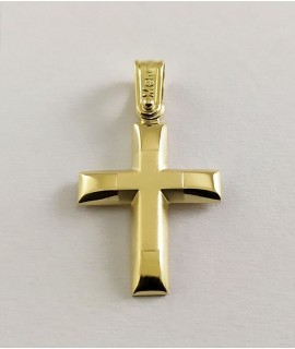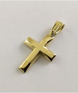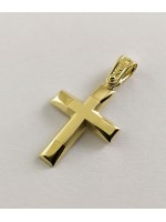 Ανδρικός Σταυρός δημιουργίας "Μενέκου", σε κίτρινο χρυσό 14 καρατίων, minimal γραμμής. Γυαλιστερή και σατινέ ματ υφή.