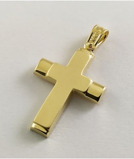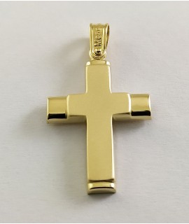 Ανδρικός Σταυρός δημιουργίας "Μενέκου", σε κίτρινο χρυσό 14 καρατίων, minimal γραμμής. Γυαλιστερή σατινέ ματ υφή.