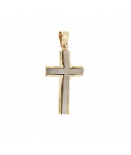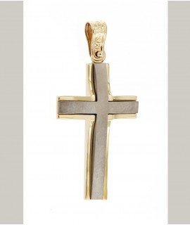 Ανδρικός Σταυρός δημιουργίας "Μενέκου", σε κίτρινο χρυσό 14 καρατίων ο οποίος εμπεριέχει σταυρό σε σατινε λευκόχρυσo. Γυαλιστερή σατινέ ματ υφή.