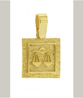 Ζώδιο κρεμαστό , δημιουργίας "Μενέκου" σε κίτρινο χρυσό, με ανάγλυφη επιφάνεια σε τετράγωνο σχήμα. Γυαλιστερή, σατινέ, ματ υφή.