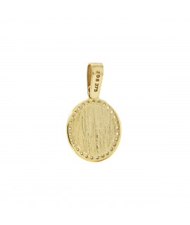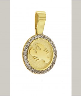 Ζώδιο κρεμαστό , δημιουργίας "Μενέκου" σε κίτρινο χρυσό, με ανάγλυφη επιφάνεια σε οβάλ σχήμα πλαισιωμένο με πέτρες ζιργκόν. Γυαλιστερή, σατινέ, ματ υφή.