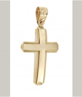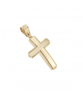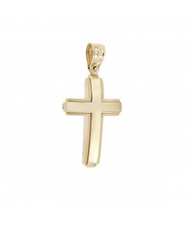 Men's Greek Orthodox cross "Menekou", 14k yellow gold, minimal, with curved lines. Glossy, satine, matte texture.