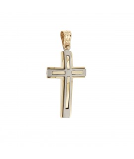 Two-tone Men's Greek Orthodox cross "Menekou" 14k, yellow gold and which includes gold cross satine texture with glossy yellow-gold cross. Glossy, satine, matte texture.