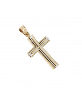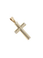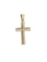 Two-tone Men's Greek Orthodox cross "Menekou" 14k, yellow gold zagre texture which includes glossy white-gold cross with a gold cross satine texture. Glossy, satine, matte texture.